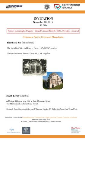 Vorträge von Eleutheria Zei (Rethymnon) und Heath Lowry (Athen) im Rahmen der Lecture Series "Remembering the Ottoman Past".