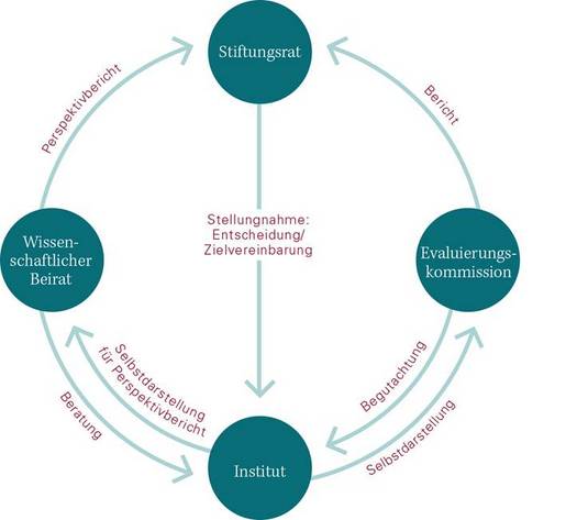 Die Wissenschaftlichen Beiräte der Institute sorgen darüber hinaus durch ihre Beratung und die Erstellung von Perspektivberichten dafür, dass sich die Institute in der Zwischenzeit weiterer Expertise zur Qualitätssicherung bedienen und sich damit auf die externe Begutachtung vorbereiten können.